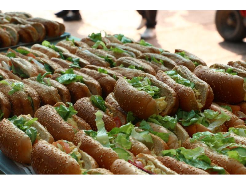 כריכונים, שתייה קלה, שתייה חמה, פוקאצ'ות (זעתר וירקות) ופלטת ירקות חתוכים.